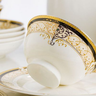 Chất liệu: Sứ xương – Sứ xương là chất liệu được làm từ tro xương động vật trộn với khoáng chất fensfat (còn gọi là Tràng Thạch) và đất sét trắng (cao lanh)). Hàm lượng sứ xương ở mức độ chuẩn vừa phải sẽ giúp sản phẩm có những ưu điểm vượt trội về chất lượng:
