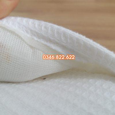 – Chất liệu vải may quai: vải cotton bồi 3 lớp (vải cotton tổ ong 290 GSM + trần