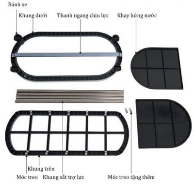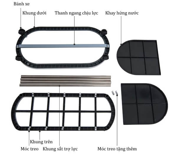 – Khung trên được chia làm các ngăn đựng dù có kích thước đều đặn, độ cứng cao