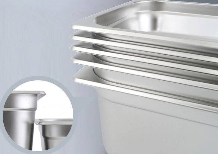 Dạng khay inox này có thể đựng được cả thức ăn nóng hay thức ăn lạnh, làm tăng độ sang trọng cho nhà hàng của bạn, đồng thời đảm bảo an toàn vệ sinh thực phẩm.