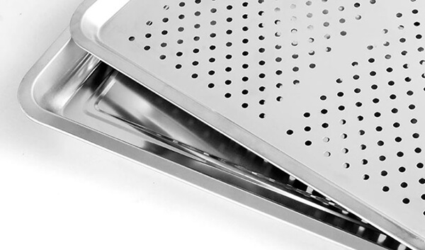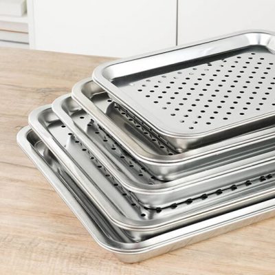 - Chất liệu: Inox 304 giúp khay luôn sáng bóng, không han gỉ, chống ăn mòn, chịu lực, chịu nhiệt tốt.
