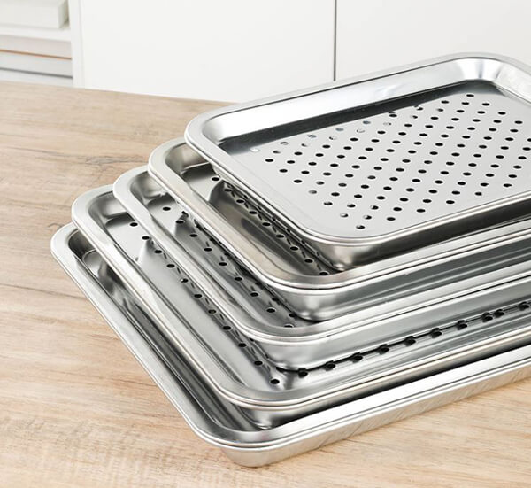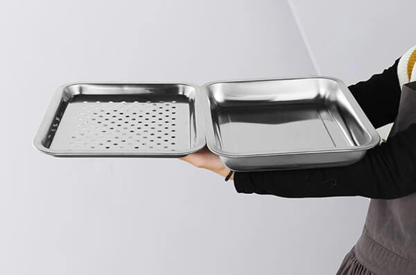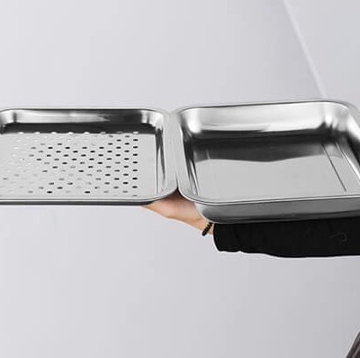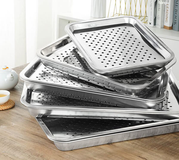 - Chất liệu inox 304 giúp khay gọn nhẹ, dễ di chuyển, dễ vệ sinh, lau chùi