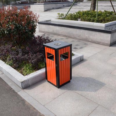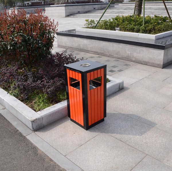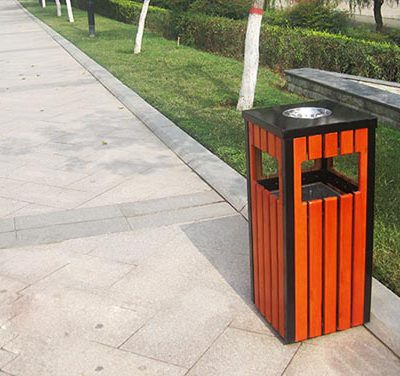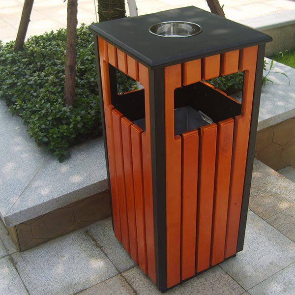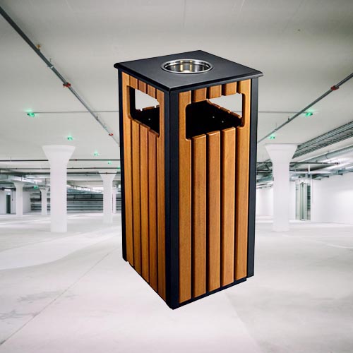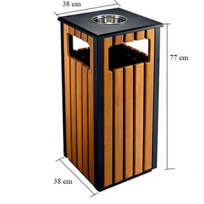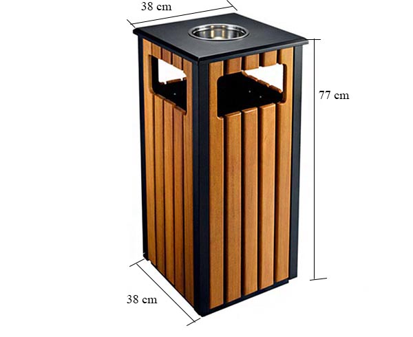 Thùng rác gỗ vuông có gạt tàn
