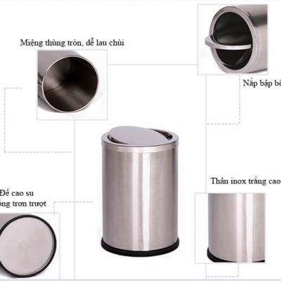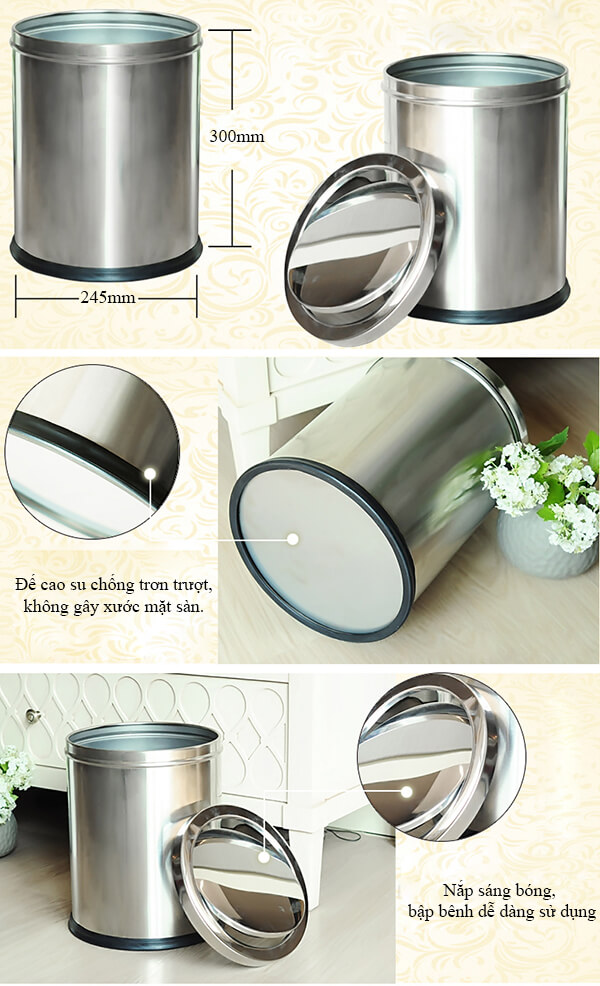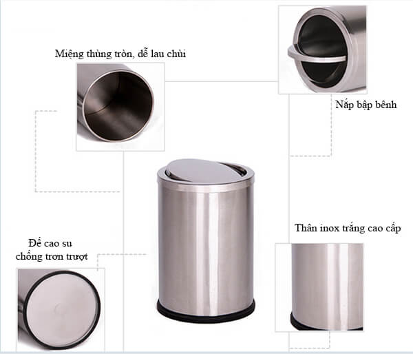 - Thân thùng hình trụ, chân bọc đế cao su chống trơn trượt