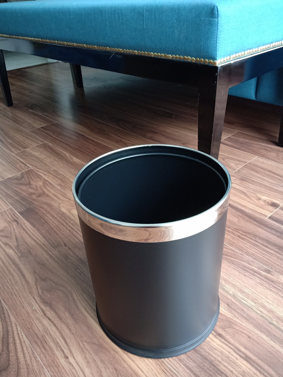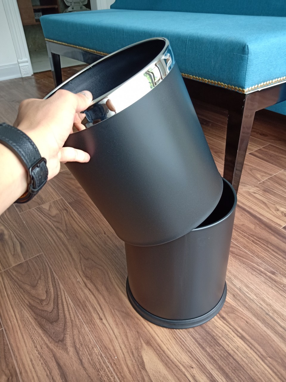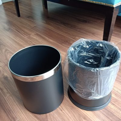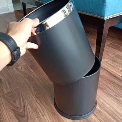 Thùng rác inox văn phòng 2 lớp màu đen