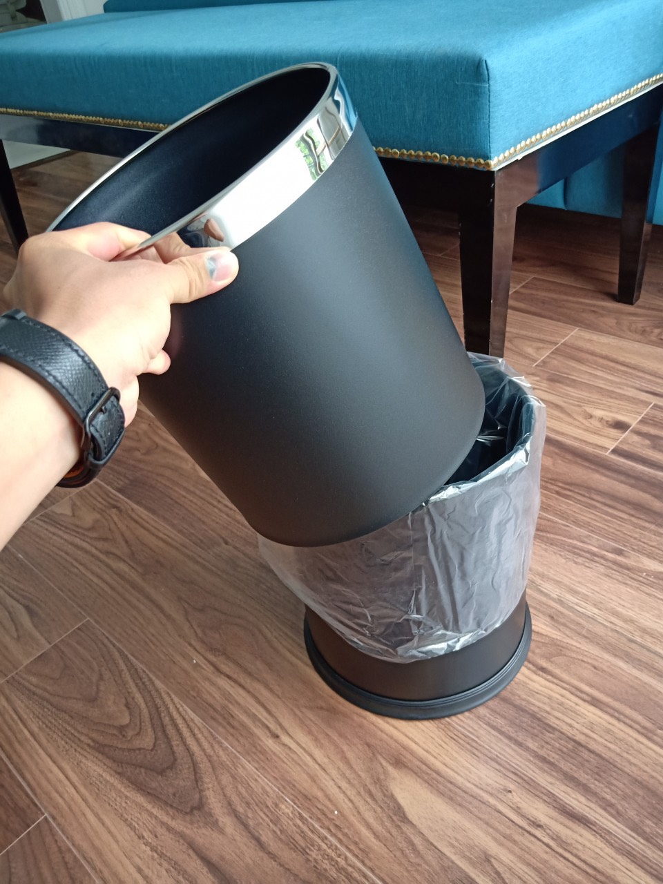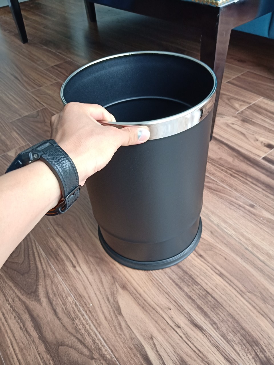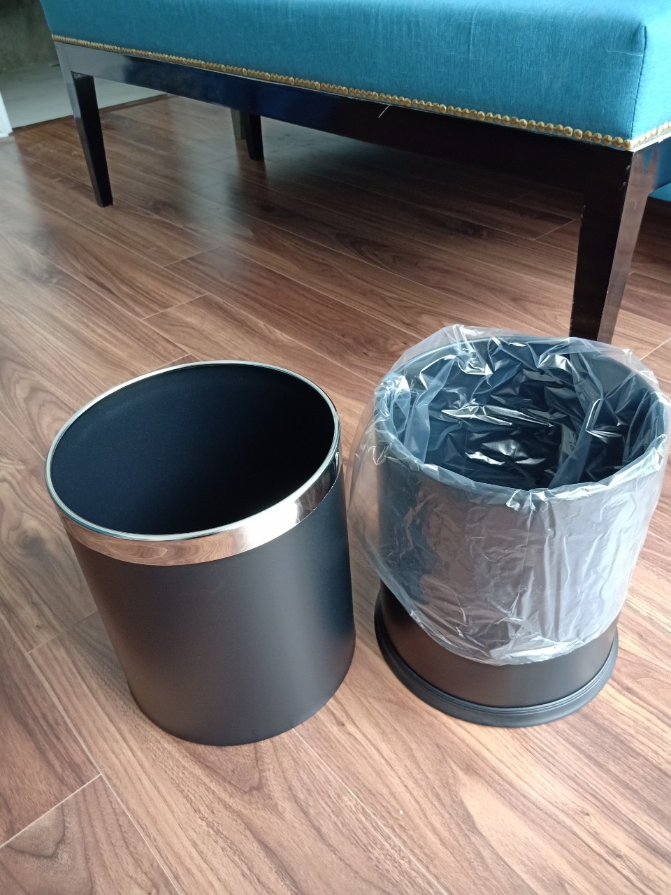 Thùng rác inox văn phòng 2 lớp màu đen
