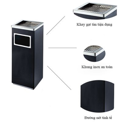 Thùng rác sảnh khách sạn có gạt tàn hình vuông