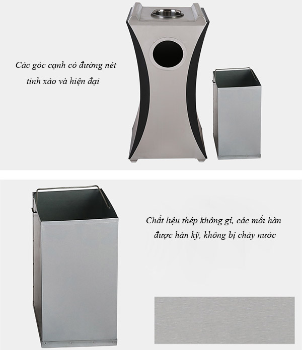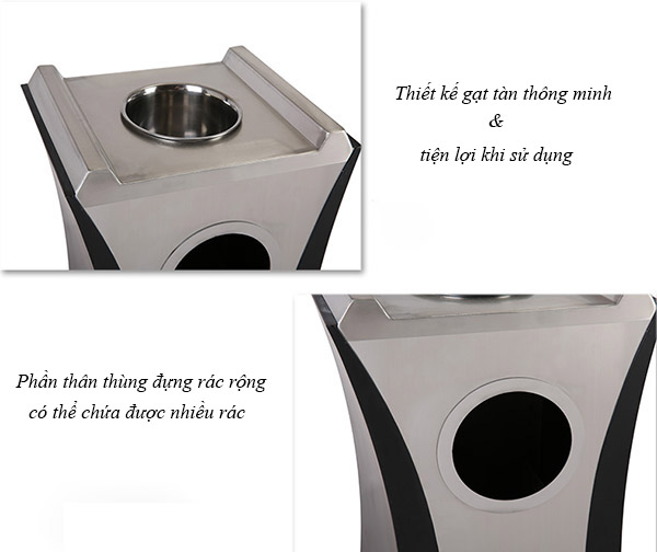 Thông tin chi tiết sản phẩm thùng rác inox gạt tàn cao cấp