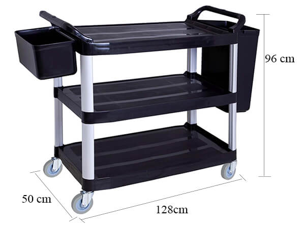 - Kích thước xe đẩy ba tầng kèm 2 khay đựng: 128x50x96 cm